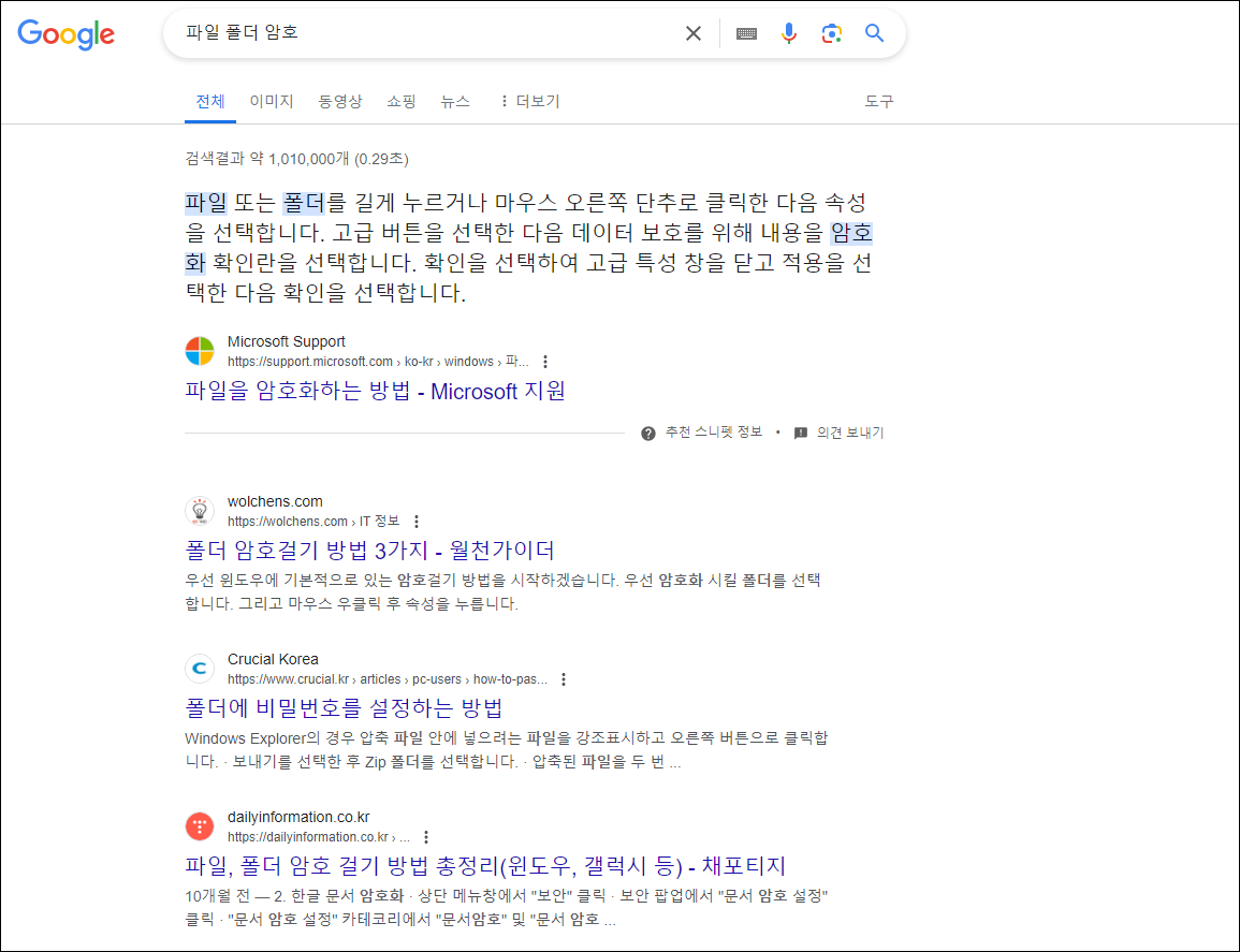 그래서 인터넷 검색해 보면 폴더 암호, 파일 암호 등의 프로그램이 많이 검색되지만, 대부분 쓰레기일 뿐입니다.